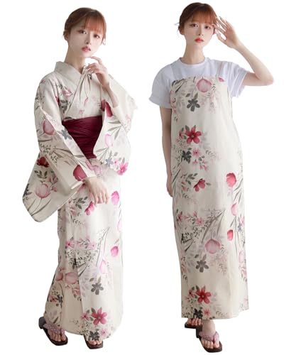 [キョウエツ] 浴衣セット 変わり織 生成り ワンピース 2点セット(浴衣、兵児帯) レディース (6.アイスフラワー, フリーサイズ)