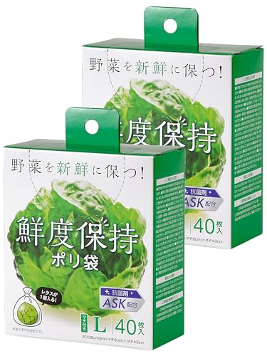 ストリックスデザイン ポリ袋 野菜保存袋 マチ付き 40枚 L 大 半透明 レタスが1玉入るサイズ 抗菌剤配合 鮮度保持袋 新鮮 SA-097